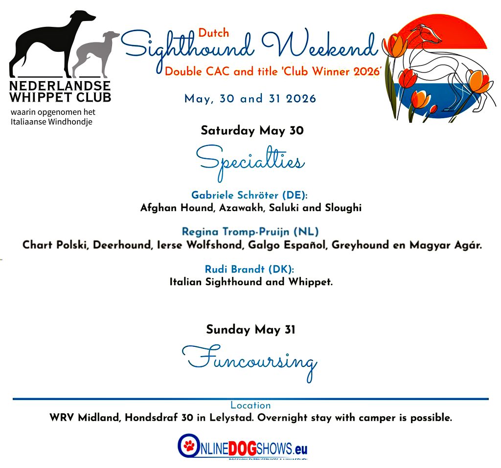 Tijd: 13:00 wandeling voor de Whippets en Italiaanse Windhondjes