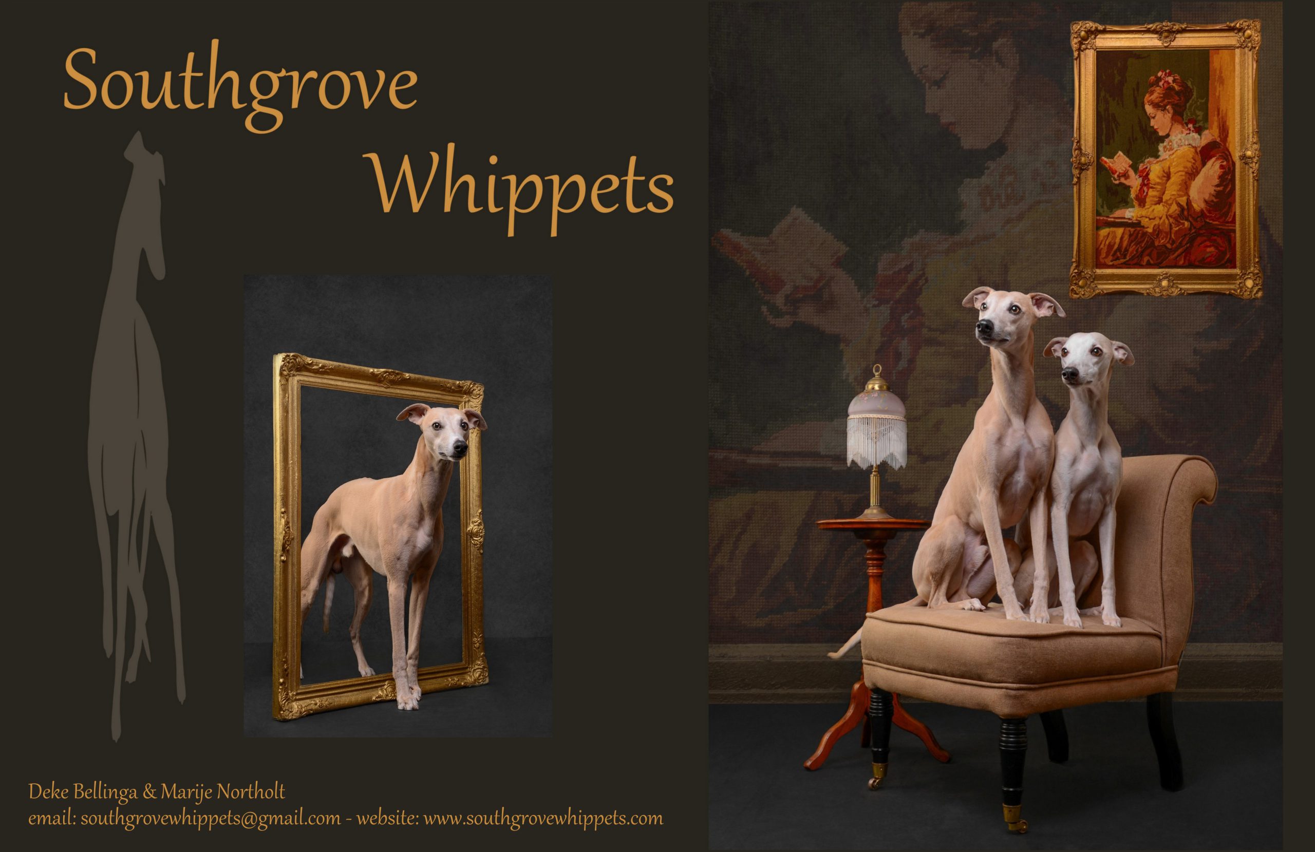 ![]() | SOUTHGROVE WHIPPETS Deke Bellinga & Marije Northolt southgrovewhippets@gmail.com www.southgrovewhippets.com |